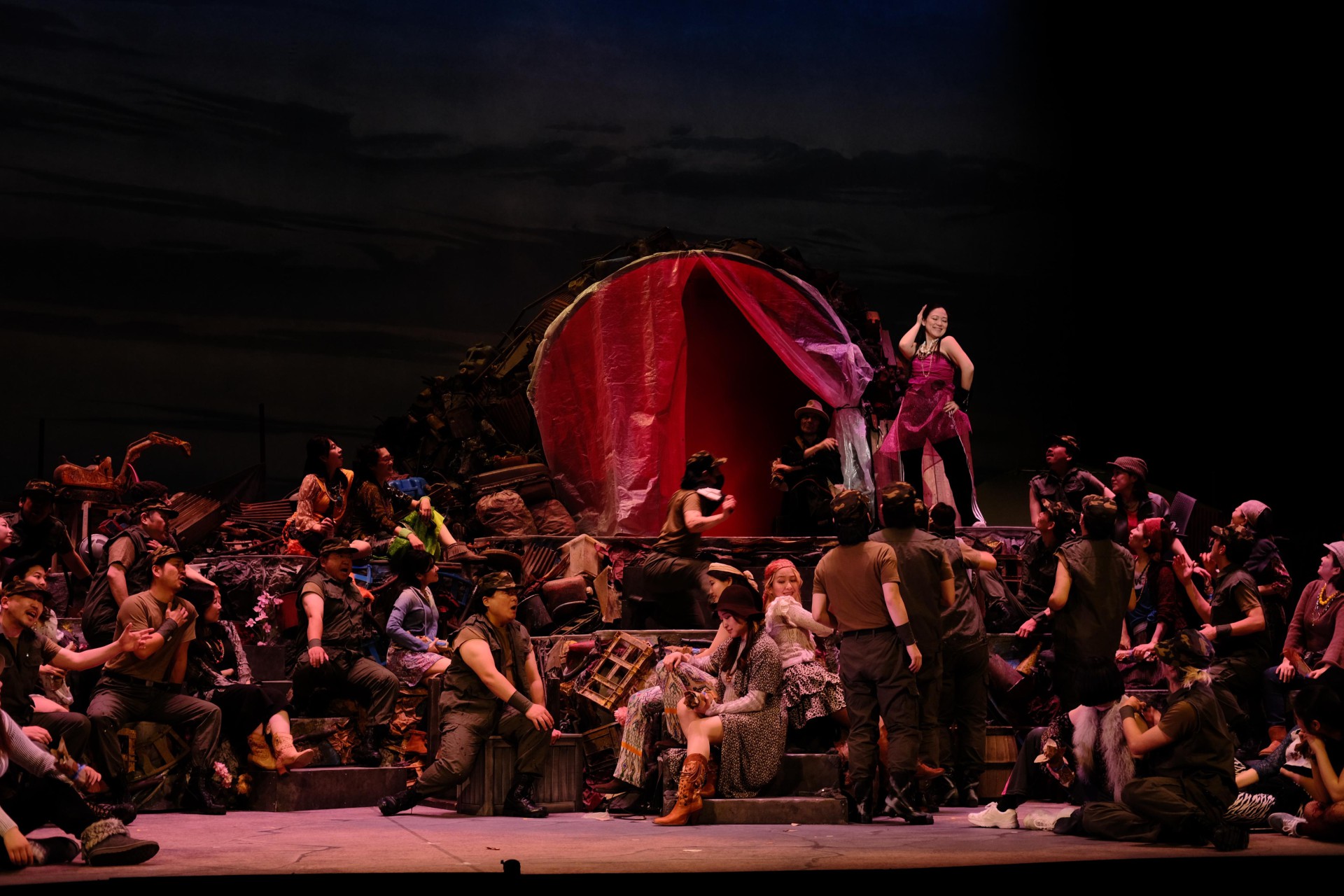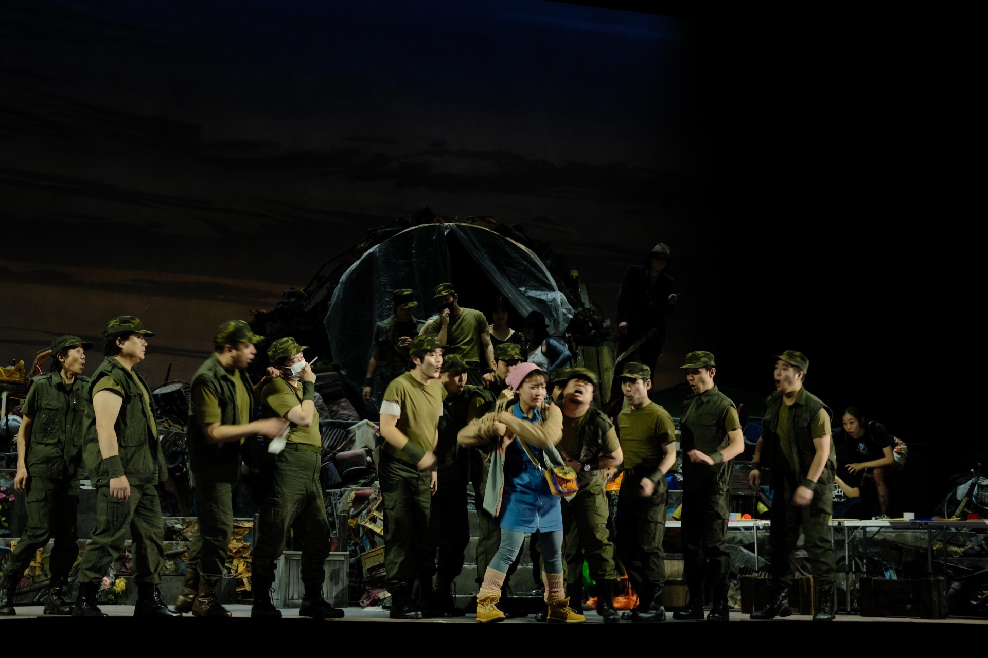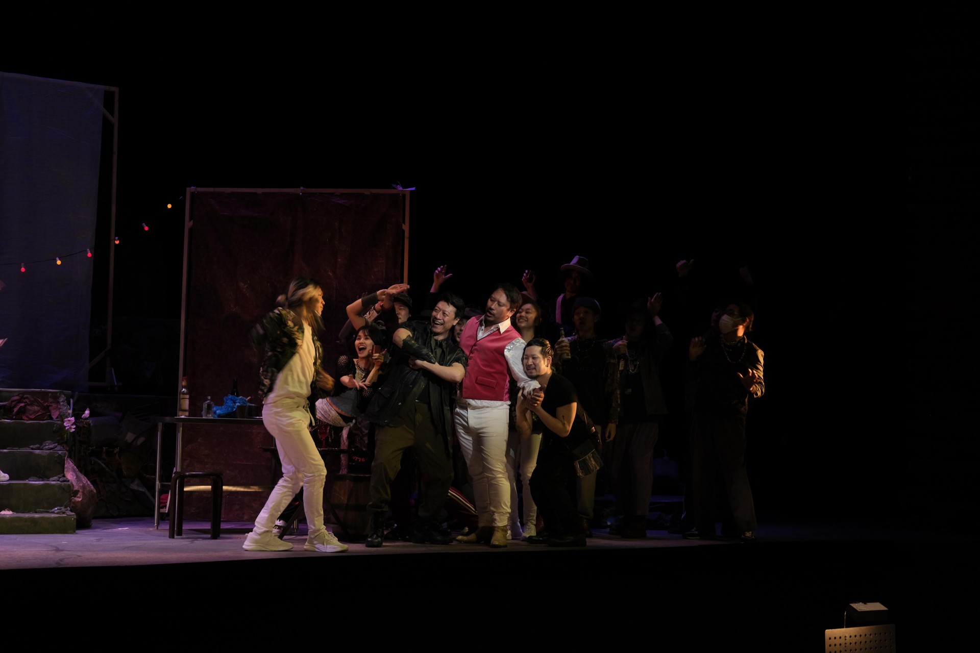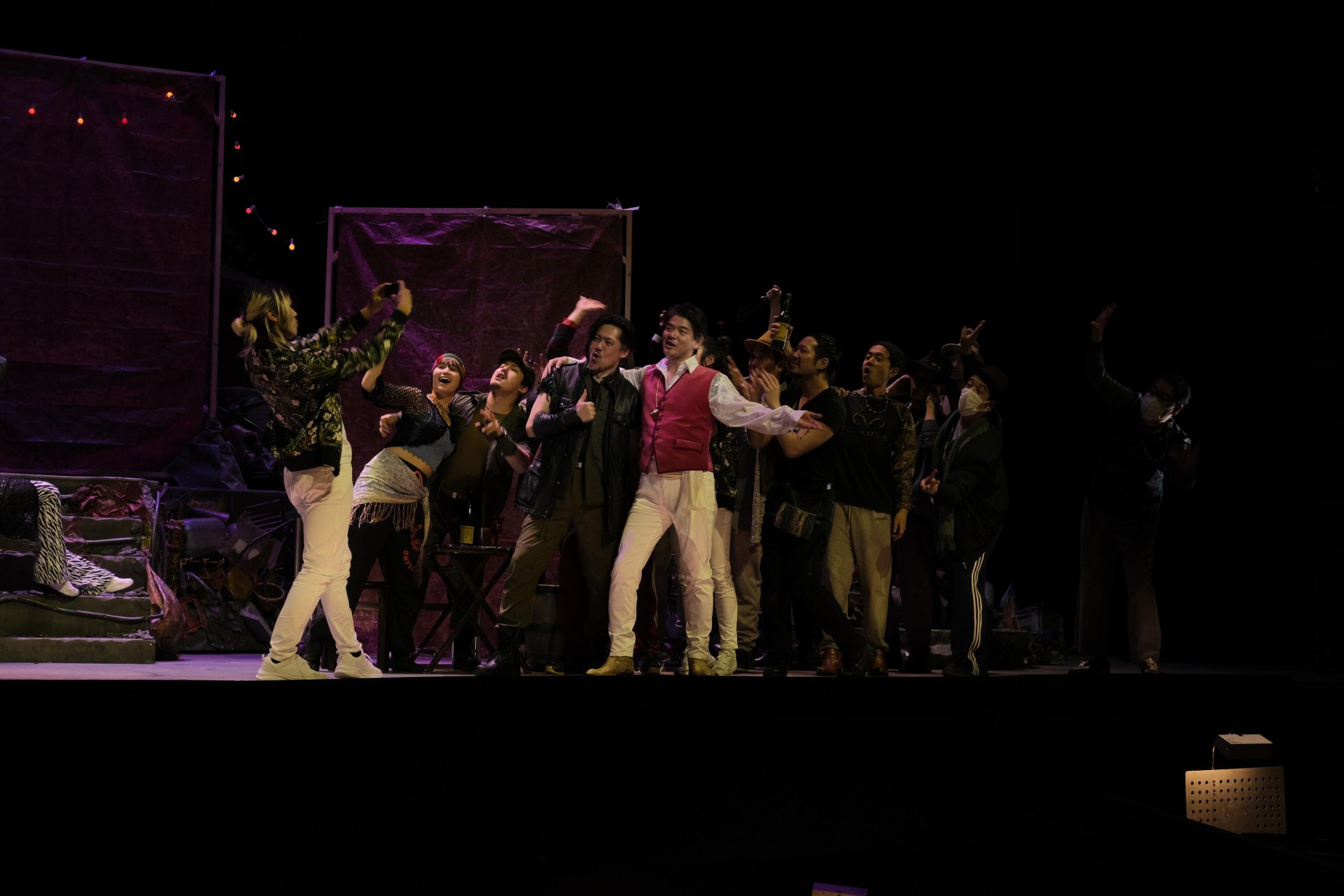 One bold choice we made was cutting all the recitatives. Carmen typically has very long spoken dialogue sections, and no matter how wonderful the singers are, these passages break the energy of the singing. When conductor Okisawa and I started editing, we removed about 70%, then realised we needed to cut it all—otherwise someone suddenly shouting “Hey Carmen, come here!” would feel out of place. The result is a very fast-paced work where you understand everything through movement, without verbal explanation.